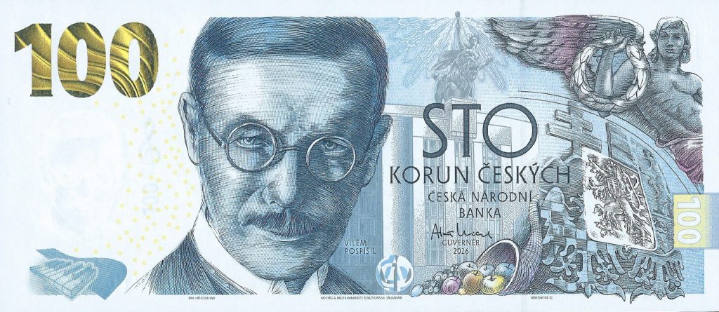 The Czech Republic new 100-koruna commemorative banknote (BNP103a) was officially reported as introduced on 21 January 2026, marking an important historical milestone: the establishment of the central bank in Czechoslovakia. This issue honors Vilém Pospíšil, the first governor of the National Bank of Czechoslovakia, whose leadership laid the foundations of modern central banking in the country. Rather than replacing circulating notes, this is a limited commemorative issue, produced primarily for collectors and institutional remembrance.