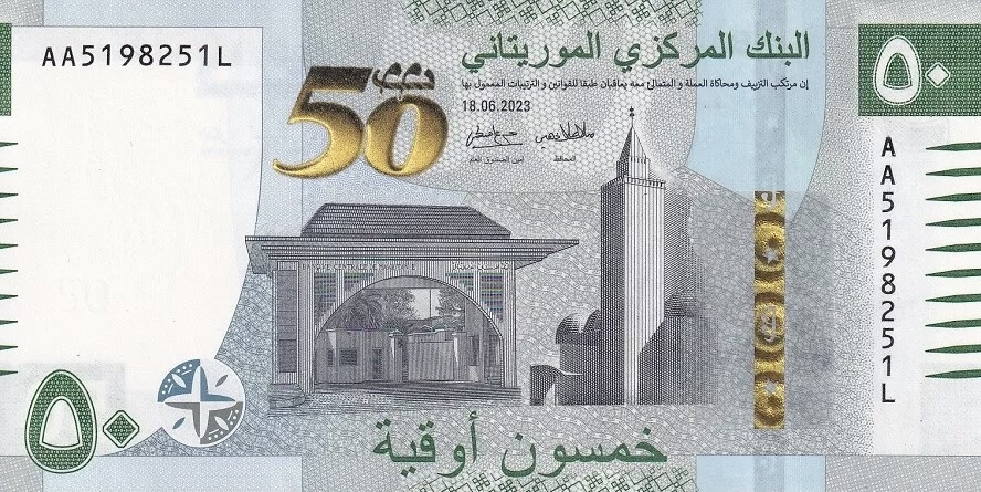 In 2023, the Banque Centrale de Mauritanie issued a commemorative 50 Ouguiya banknote to mark the 50th anniversary of the Ouguiya currency, first introduced in 1973. This special edition not only celebrates half a century of the nation’s monetary history but also showcases Mauritania’s cultural heritage and advancements.