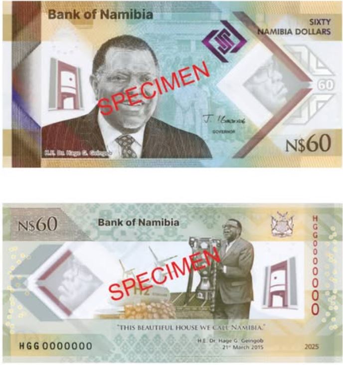 President Nangolo Mbumba has formally unveiled the commemorative Hage Geingob N$60 note. The new note is legal tender alongside the existing currency. The new banknote will only be printed once-off, designating it as a collector’s item.