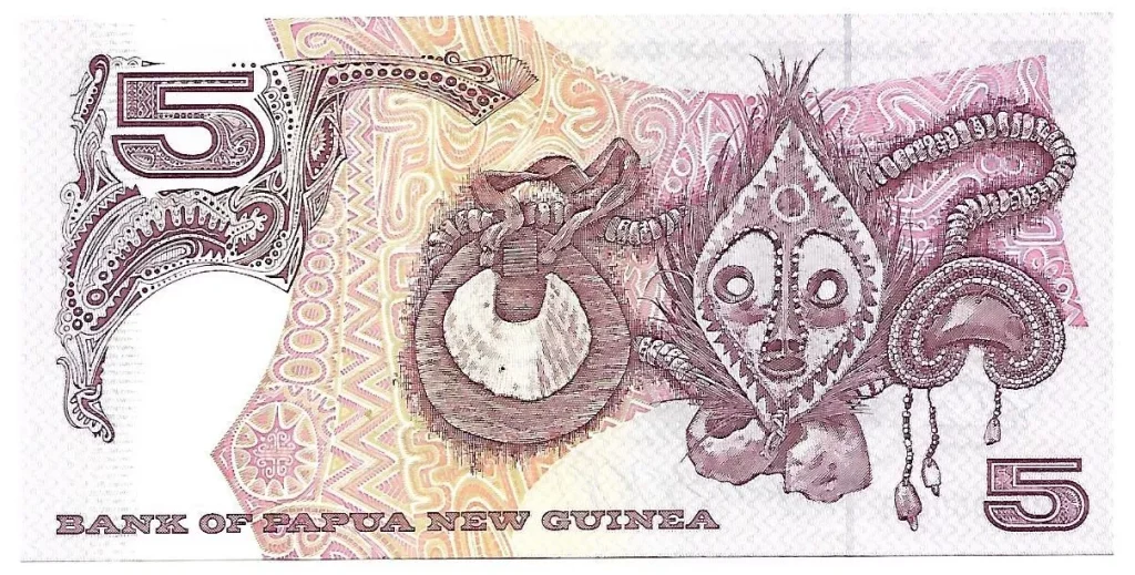 The reverse side of the banknote depicted various indigenous artifacts, tools, and ceremonial items, showcasing the nation’s rich traditions and craftsmanship. This design aimed to honor Papua New Guinea’s history while embracing modern advancements.