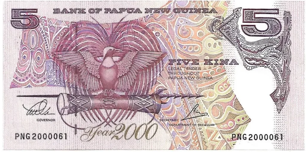 In the year 2000, the Bank of Papua New Guinea (BPNG) issued a special 5 Kina commemorative banknote to celebrate the new millennium. This limited-edition banknote was designed to reflect Papua New Guinea’s cultural heritage, economic progress, and national identity as it entered the 21st century.