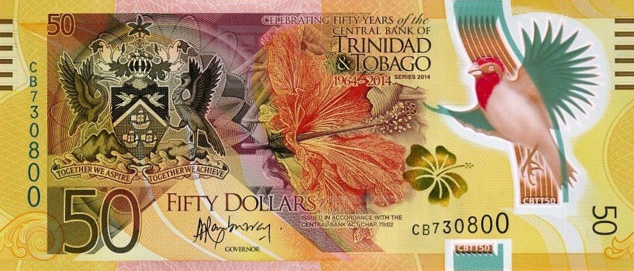 The Central Bank of Trinidad and Tobago issued a 50-dollar commemorative banknote